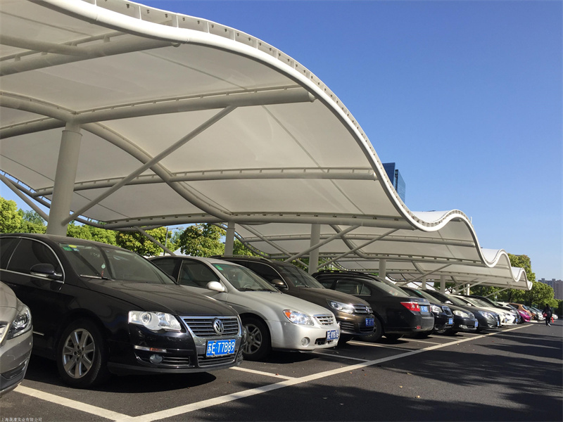 膜结构车棚是一种以薄膜材料为主要构件的车棚建筑。它采用柔性的薄膜覆盖在支撑结构上,形成曲面形状,以提供遮阳、防雨、防风等功能。